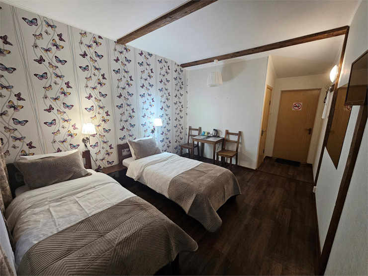 | Стандарт 2-местный TWIN | 18 кв.м. | 2 чел. | Мебель (вешалка, зеркало, кровати односпальные, стол, стулья), Оборудование (телевизор, чайная станц... | |