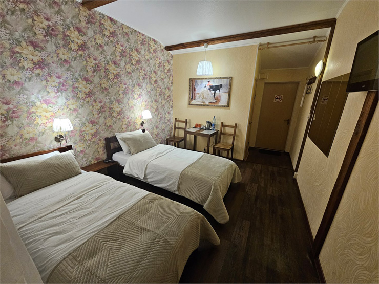 - Сервис: Wi-Fi бесплатно, смена полотенец, смена постельного белья, уборка номера