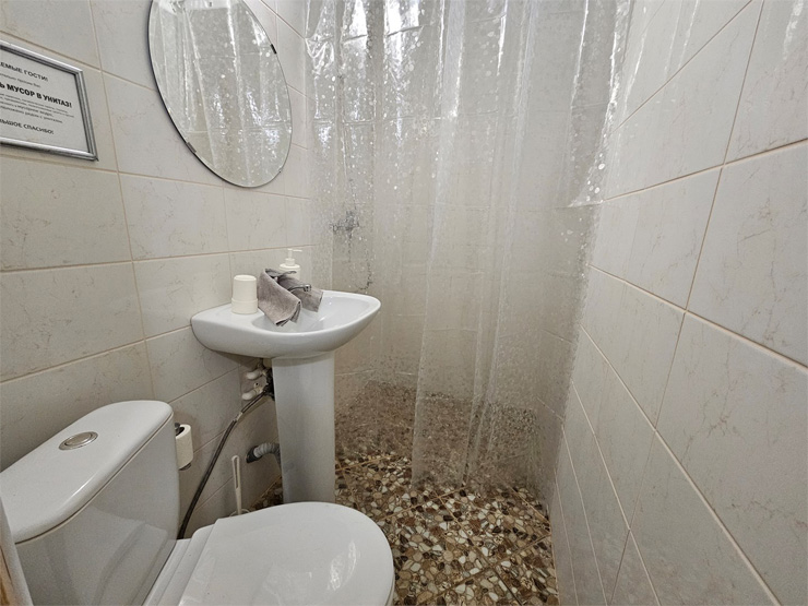 - Санузел: с душем, тапочки, туалетные принадлежности